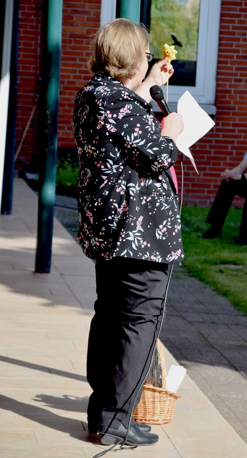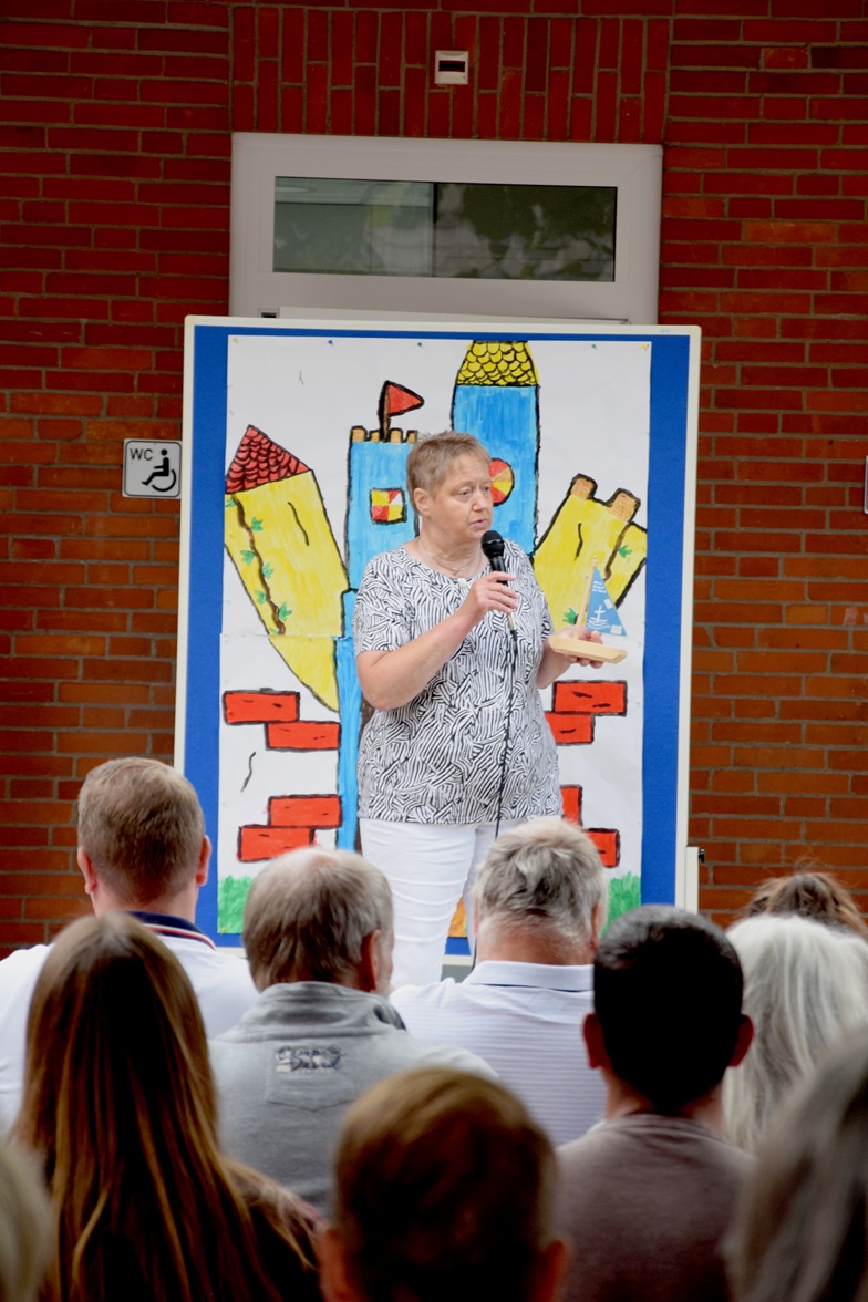 Frau Gronewold überreichte Lisa ein Spiel und ein T-shirt.